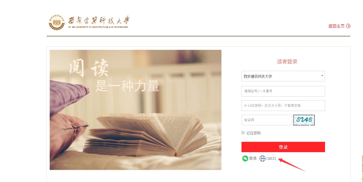 第四步:在我校统一身份认证界面输入用户名和密码。(用户名为工号/学号,【注意】初始密码为本人身份证后六位。)登录成功即可实现《畅想之星电子书》的CARSI远程访问。