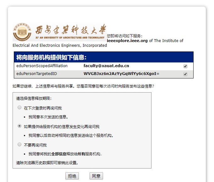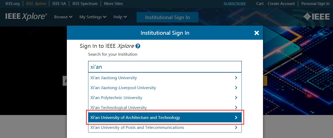 第五步:登录成功后,在IEEE主页面正上方会显示“Xian Univ of Architecture and Tech”字样,用户即可实现IEEE 的CARSI 远程访问。