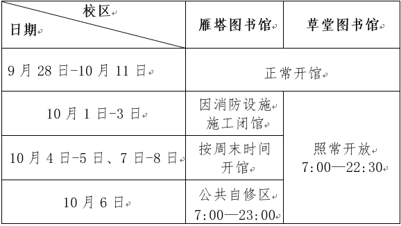 10月1日起,雁塔校区执行冬季作息时间。雁塔校区图书馆行政办公时间调整为: