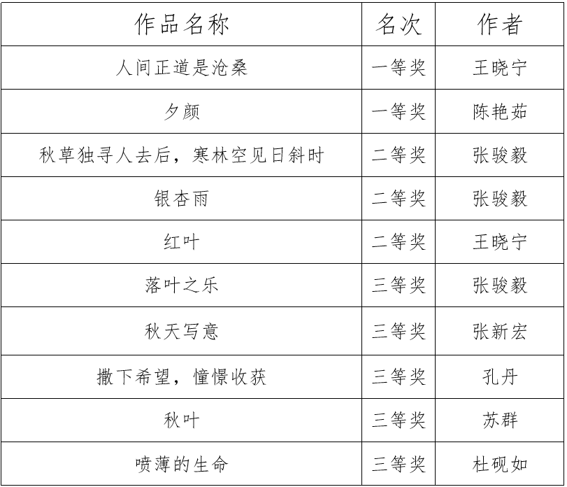 图书馆工会“秋之韵”摄影比赛获奖作品一览表
