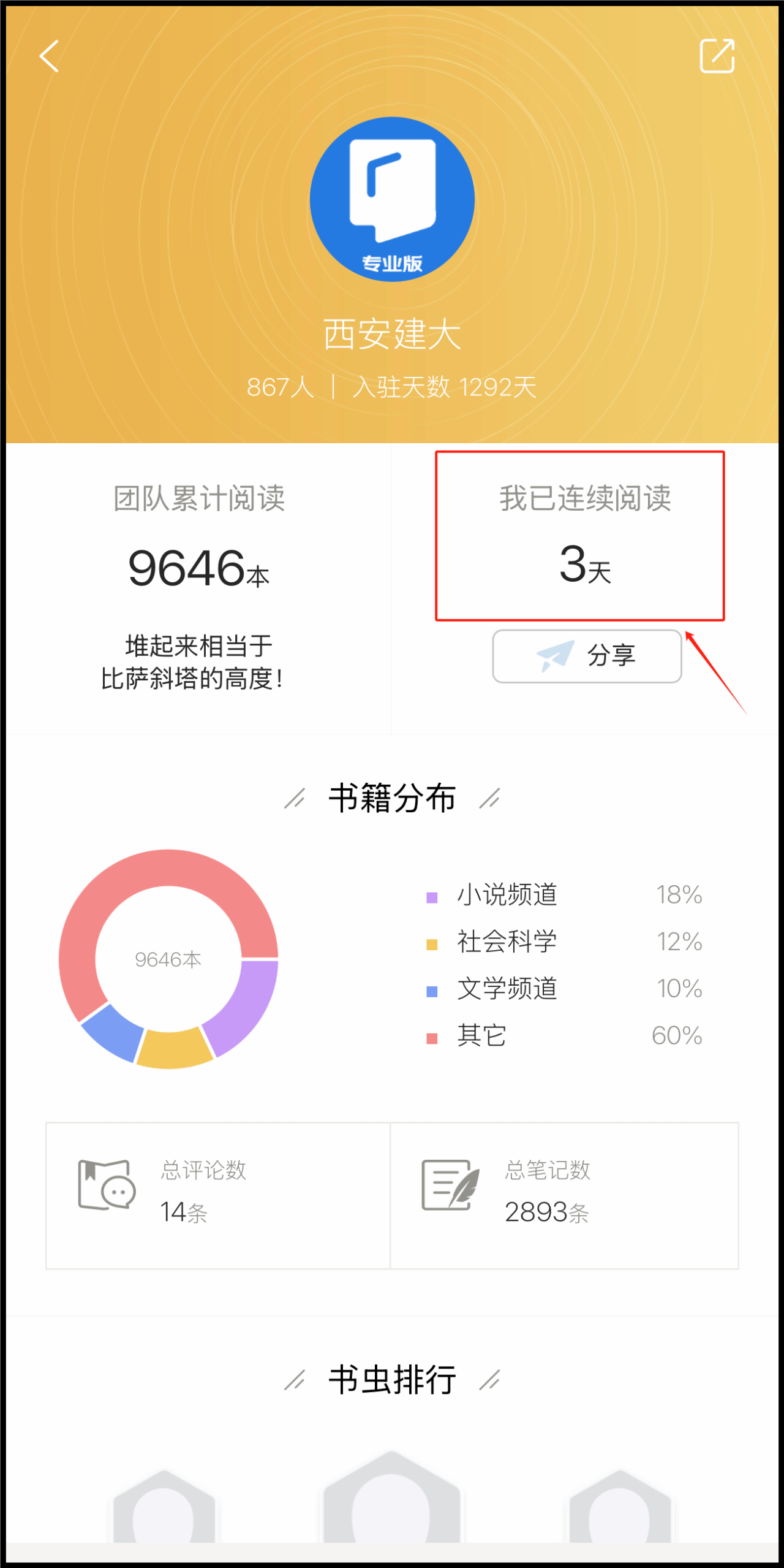 点APP右上角logo进入“团队阅历”,点击“我已连续阅读XX天”模块,即可看当天实时阅读时长。